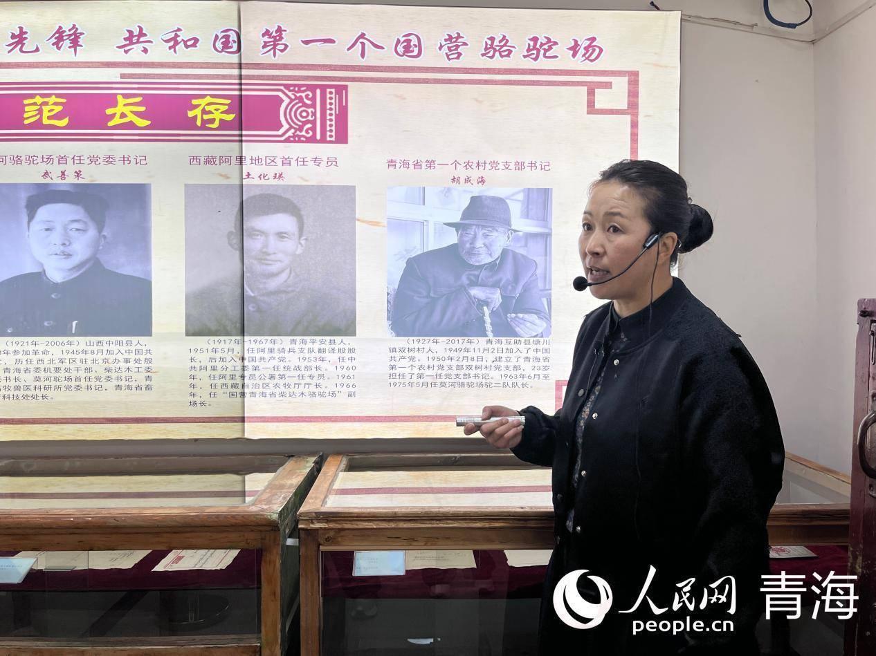 教训员程建玲正在论述驼工历史。实习生 张秀青摄