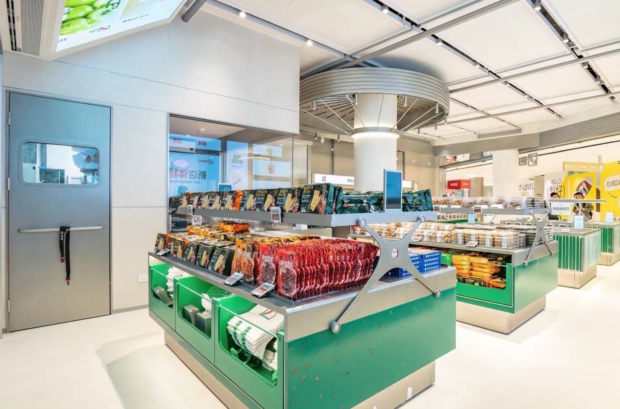 据绝味鲜卤官方账号发布本体及网友晒图来看,该门店以绿色系为主,空间较大,家具也愈加丰富,除了绝味的卤味家具外,还有多样麻辣零食、饼干、糕点、生果以及饮品等。