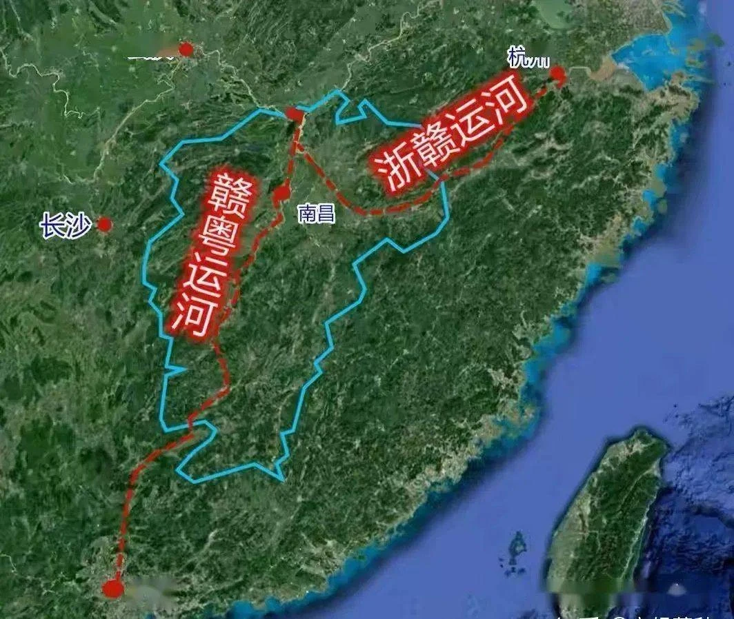 咱们先把舆图铺开看,这运河北头扎进杭州的钱塘江,中间穿江西赣江而过,南方径直接广东珠江,拉满了1988公里。比咱们熟知的京杭大运河还多出194公里,妥妥的“水上新动脉”。