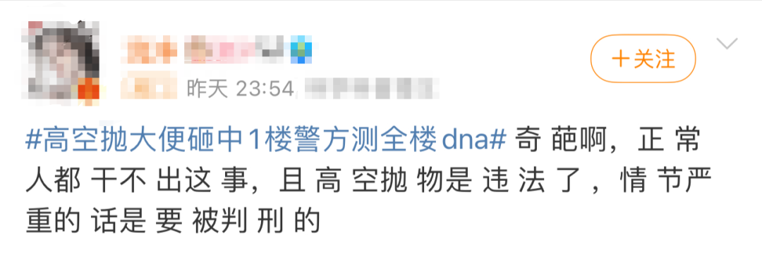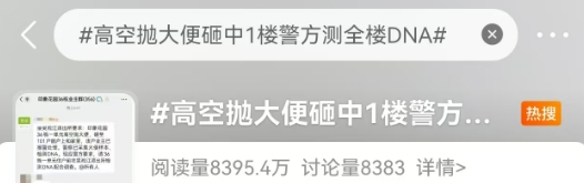 其时,江苏昆山市的印象花圃,某单位楼也出现了,高空抛"污"事件, 由于民众视频未能捕捉到高抛画面, 警方当即遴选了DNA检测比对,从全单位几十户住户中比对肇事者。就在收集DNA的第二天,抛污的肇事者主动投案,现在已被警方刑事拘留。